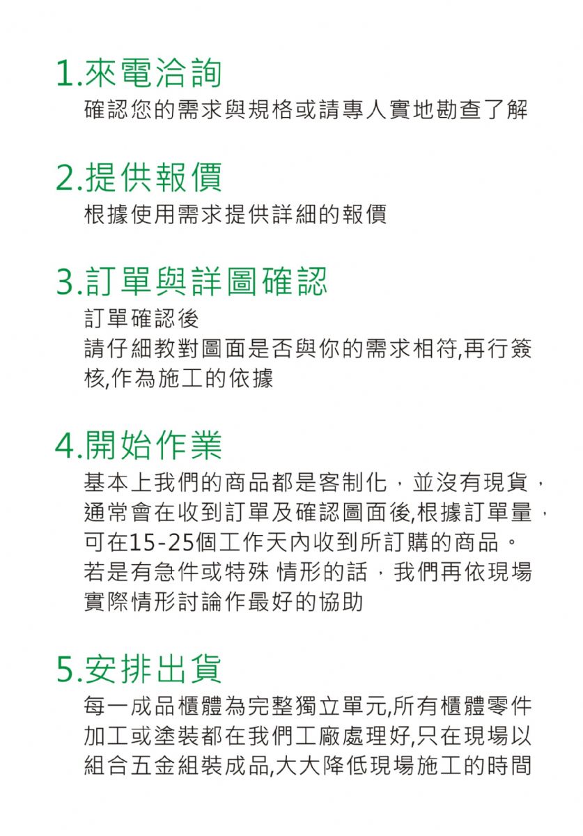 ☆ ★~本公司具CNLA實驗室負責人及品管、校正認證、實驗室測試、甲級空氣污染防治專員等證書~☆ ★ ☆ ★~新站落成 敬請指教~☆ ★ ☆ ★~實驗室設計王熱誠招待您~~!!~☆ ★ ☆ ★~您在找我們嗎?歡迎您進入我們的空中業務部~☆ ★ ☆ ★~歡迎光臨~實驗室設計王~☆ ★ ☆ ★~歡迎您到留言版給我們加油打氣~☆ ★ ☆ ★~歡迎光臨本站~☆ ★ 搜尋 首頁 » 常見問題 常見問題 請問一般訂購的程序是什麼? 請問網頁上的商品我可以直接詢價嗎? 您好,請確認您現場所需的尺寸.規格與用途,再告訴我們您所需要的商品款式,我們就可以為您報價啦! 請問我們要做實驗室規劃,只要有場地,你們就可以設計了嗎 根據產業別不同,每位工程師所需求的功能及動線也不一樣,所以最好還是要有自己初步的規劃和想法,這樣再導入我們的商品,就比較快達成共識. 請問我手邊有初步的規劃,要如何詢價 您好,恭喜您有自己初步的規劃,只要將您初步的設計/尺寸/規格/數量 e-mail至superla.superla@msa.hinet.net,將會有專人為您提供詳細的報價喔! 1